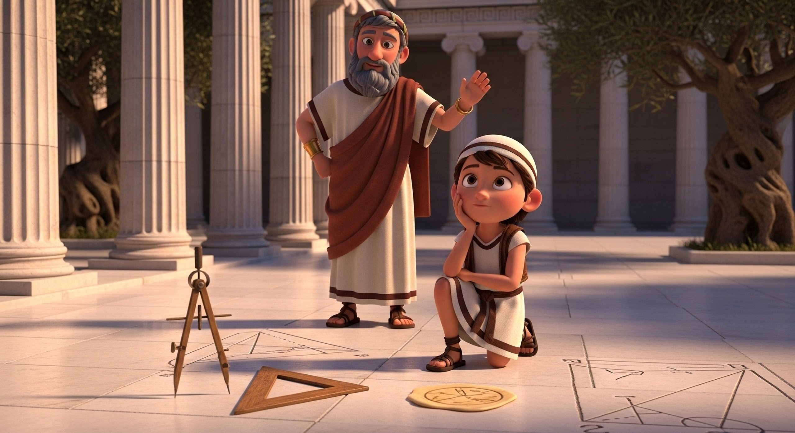Ταξίδεψε στην Αρχαία Ελλάδα. Γνώρισε τον Πυθαγόρα και εξερεύνησε τα μυστικά των ορθογώνιων τριγώνων. Υπολόγισε εμβαδά, μέτρησε κύκλους, μάθε για τους τριγωνομετρικούς αριθμούς και δημιούργησε εντυπωσιακά τρισδιάστατα σχήματα 🏛️