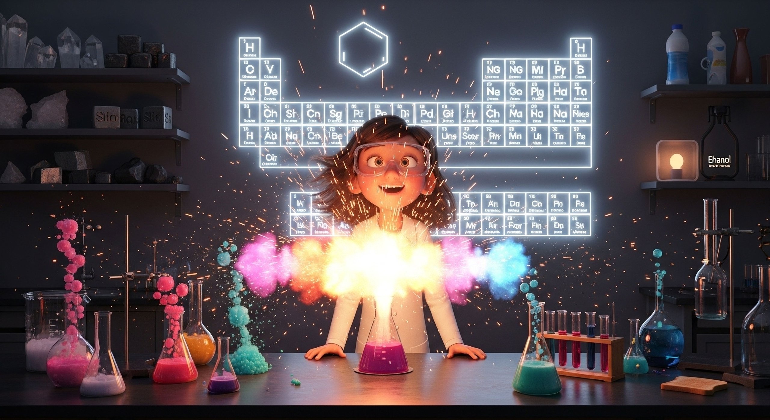 Ετοιμάσου για μια χημική έκρηξη γνώσεων! 🔥 Θα γνωρίσεις τα οξέα και τις βάσεις, θα εξουδετερώσεις διαλύματα και θα ανακαλύψεις τα άλατα που κρύβονται παντού γύρω σου — ακόμα και στο φαγητό σου! Στη συνέχεια, θα ταξινομήσεις στοιχεία, θα εξερευνήσεις τον θαυμαστό κόσμο του περιοδικού πίνακα και θα γνωρίσεις το πυρίτιο, τα μέταλλα και τον άνθρακα. Από τα καύσιμα μέχρι τα πλαστικά και την αιθανόλη, η καθημερινή ζωή είναι γεμάτη Χημεία… και τώρα ήρθε η ώρα να την κατακτήσεις! 🧪⚗️